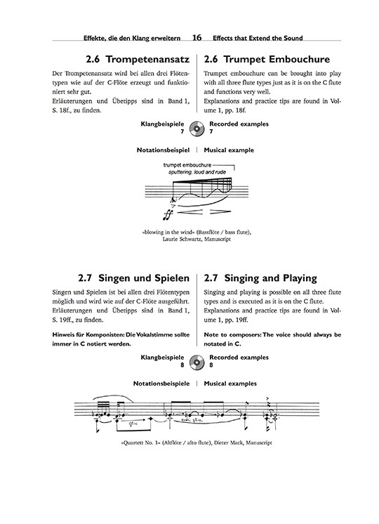 Following the great success of The Techniques of Flute Playing I for concert flute, the second volume systematically addresses all aspects of sound production and performance technique for piccolo, alto, and bass flute. Techniques are introduced using instructive examples from the repertoire, which also provide information on special notation; while valuable practice instructions guide the way to their application. Using the supplemented CD, players can compare the resulting sounds to a recording of Carin Levine. The volume presents an invaluable and applicable resource for composers, players, and pedagogues. Text is presented in both English and German.