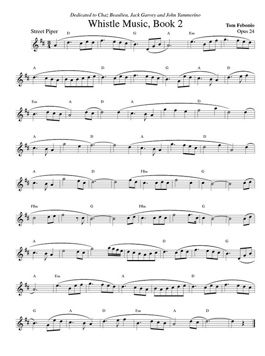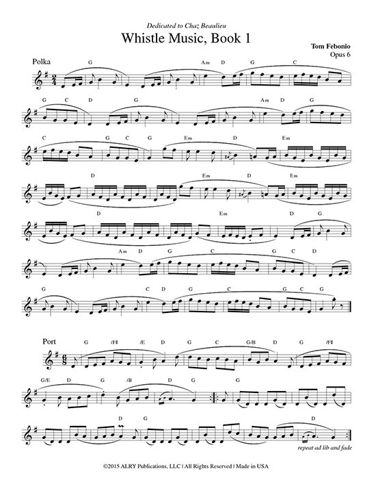 Formerly available as three separate pieces, this new volume contains all of the Whistle Music selections in one book. In all, there are 36 rustic pieces, scored for tin whistle or piccolo, flute, violin, oboe, mandolin, or just about any other treble instrument. Fun short pieces that can be used in any combination for a new twist on a program. Have fun mixing all of these, or using them as demonstrations for different instruments. Score consists of a single line of music, some with chord symbols and some without. Wonderful fun for practicing your improvisation. Great for encores, too!