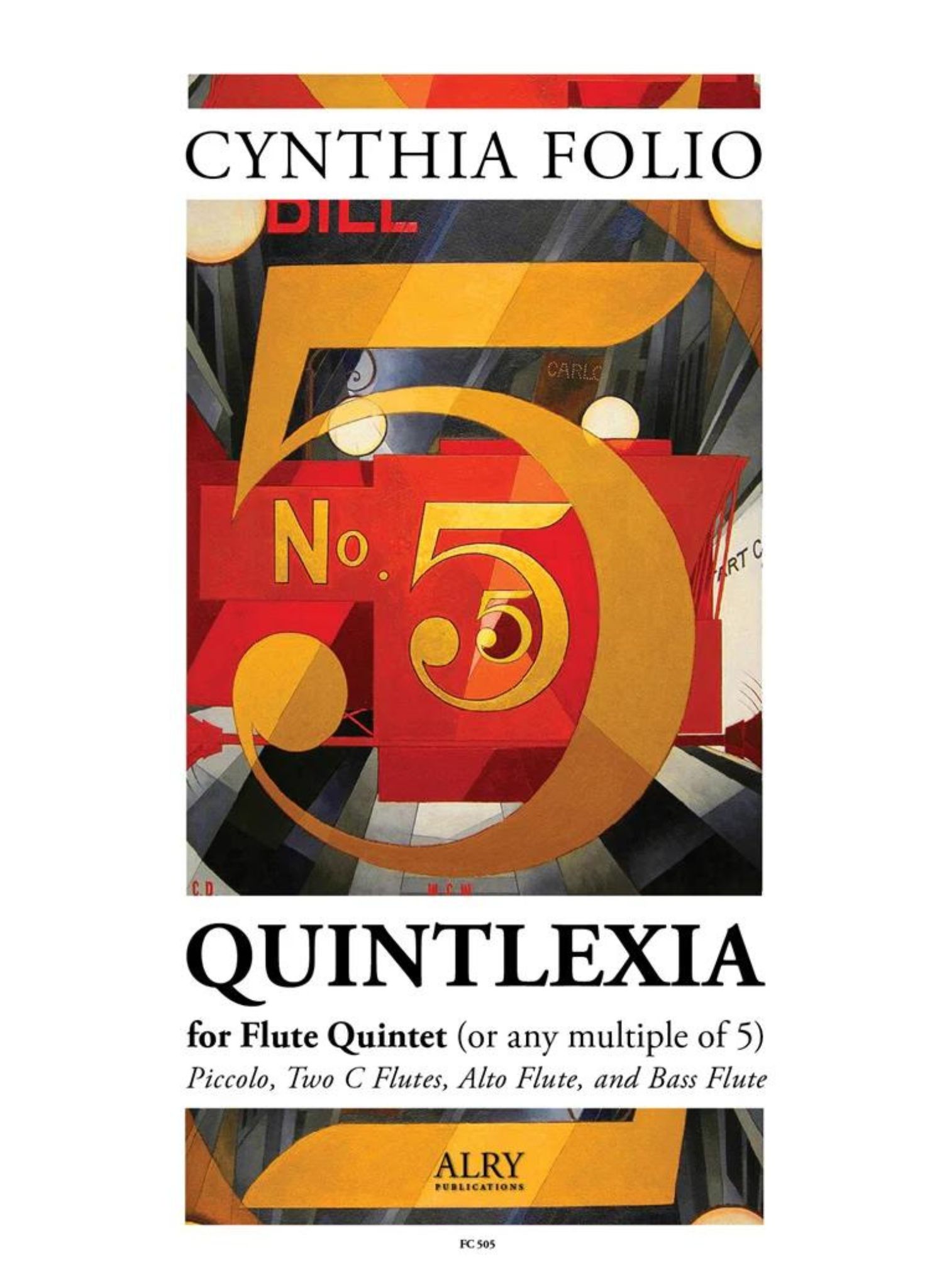 Quintlexia for Flute Quintet (or Choir) by Cynthia Folio. From the composer: 'Quintlexia (2013) is a quintet for five flutes (or flute choir). The piece is the result of a commission from the Oklahoma Flute Society as a celebration of the 20th Annual Oklahoma Flute Fair. The title comes from a Saturday Night Live skit in which Bill Murray is interviewed by Jane Curtain because he supposedly had a disability, called 'quintlexia,' which meant that he could only say five words: 'That’s true, you’re absolutely right.' His fictional character made millions—both despite, and as a result—of this 'disability'.