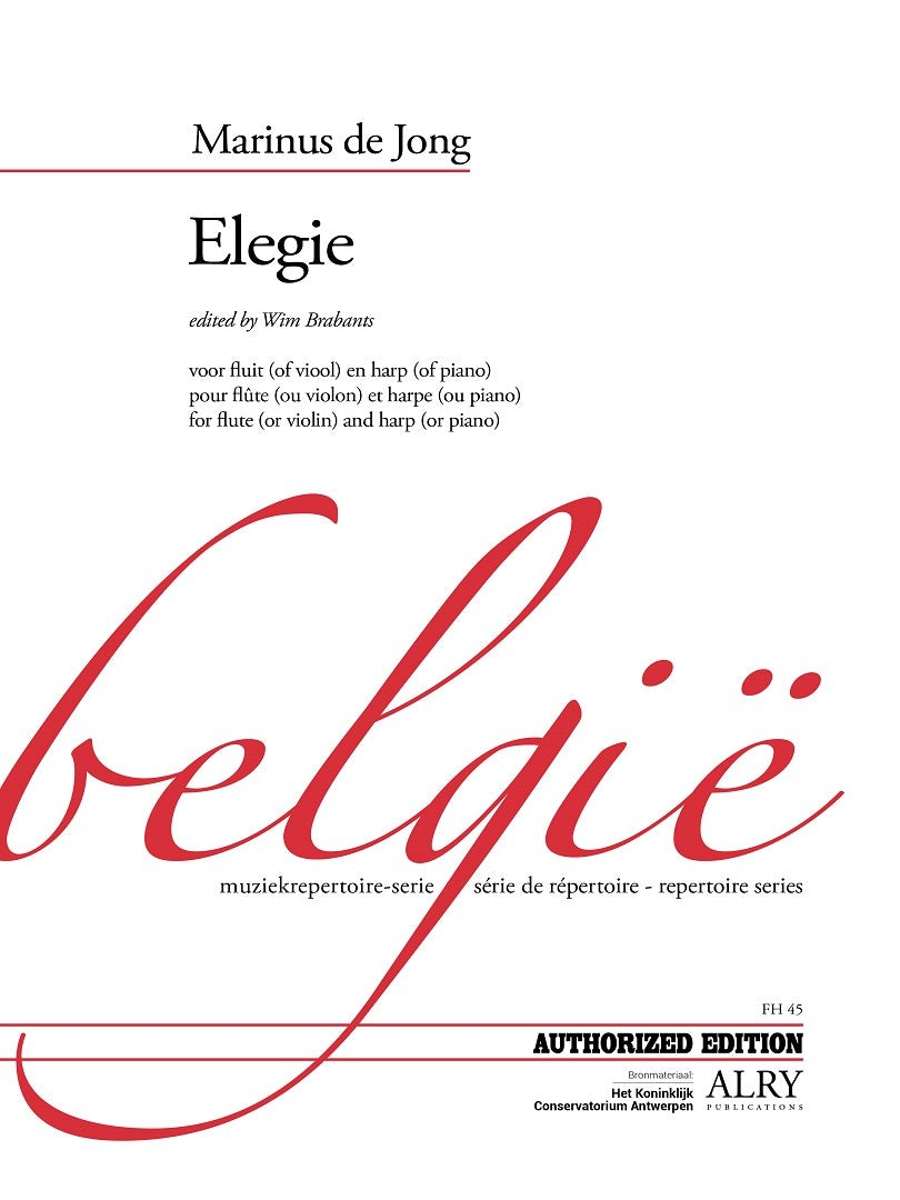 Though born in the Netherlands, composer Marinus de Jong (1891 - 1984) traded his Dutch citizenship for a Belgian one in 1926, and is considered one of Belgium's most prominent composers and pianists of the 20th century. He began his studies at the Royal Conservatory of Music in Antwerp, Belgium, at the age of 15, studying under Lodewijk Mortelmans and Emile Bosquet. The manuscript for his Elegie dates back to 1982 and includes indications that it can be played by either flute or violin, accompanied by harp or piano. This edition is edited by Wim Brabants.