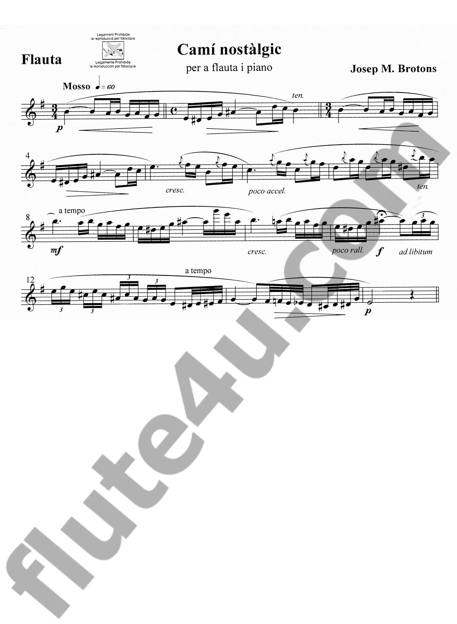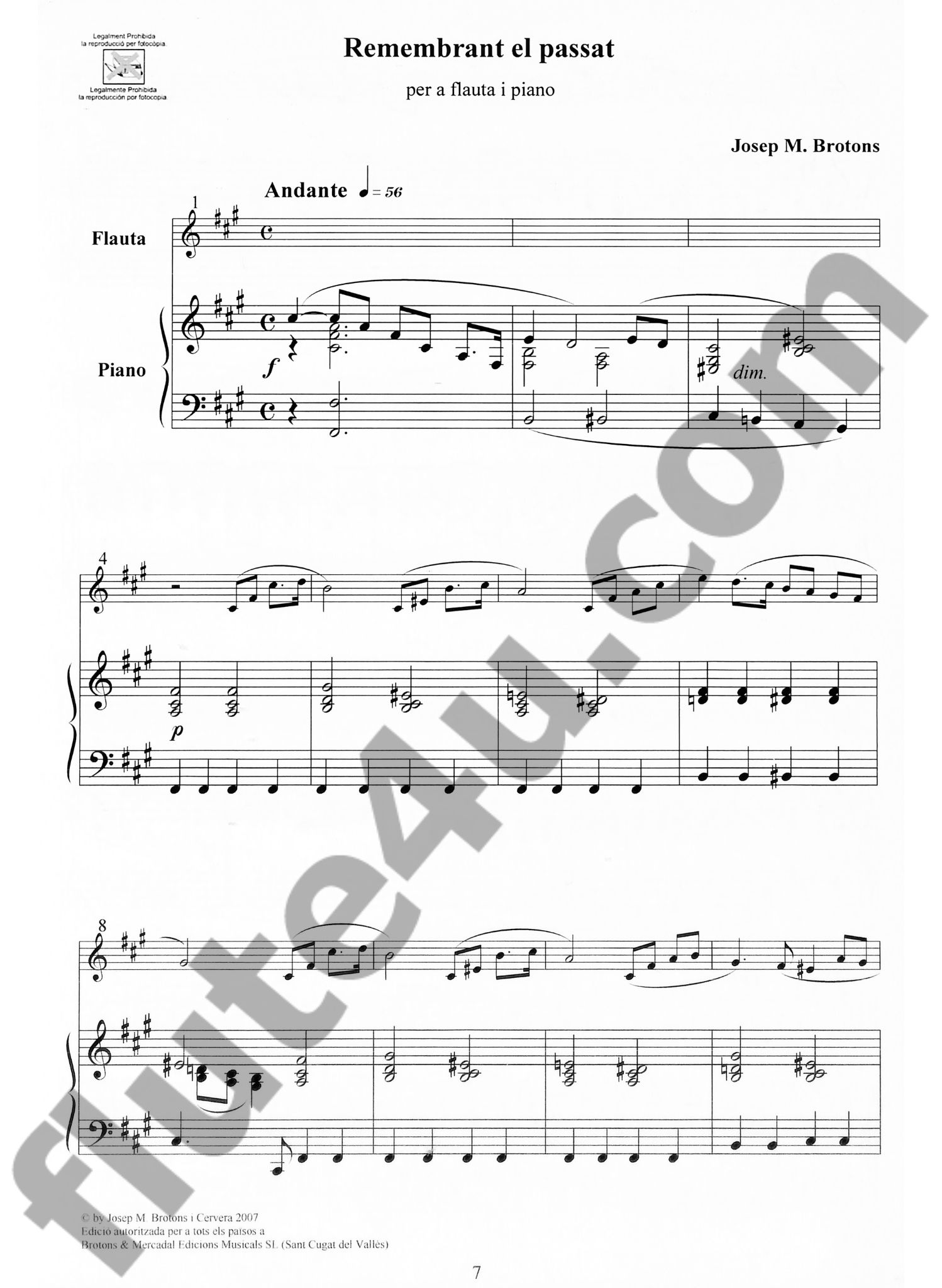 Brotons & Mercadal Edicions Musicals presents 'Cami nostalgic | Remembrant el passat (Nostalgic Way, Remembering the Past)' for flute and piano by Josep Maria Brotons.
