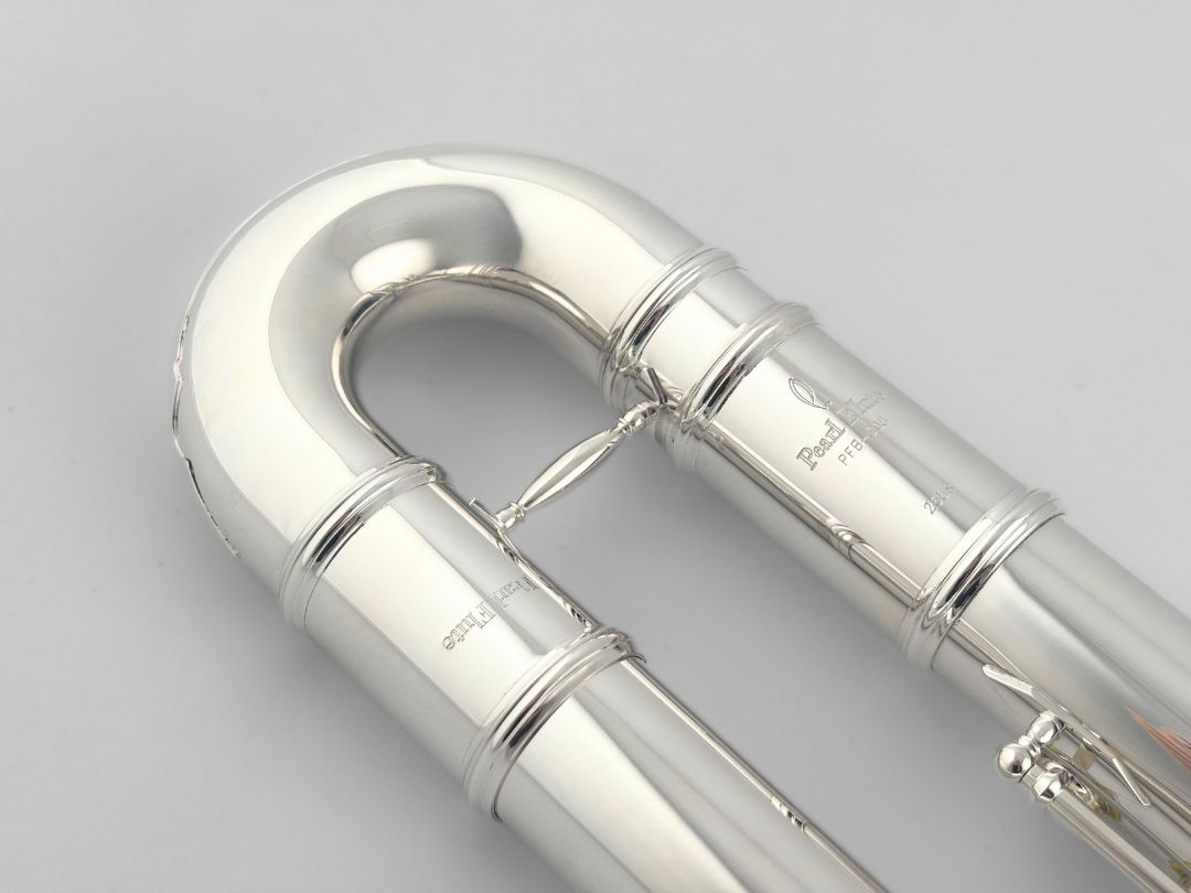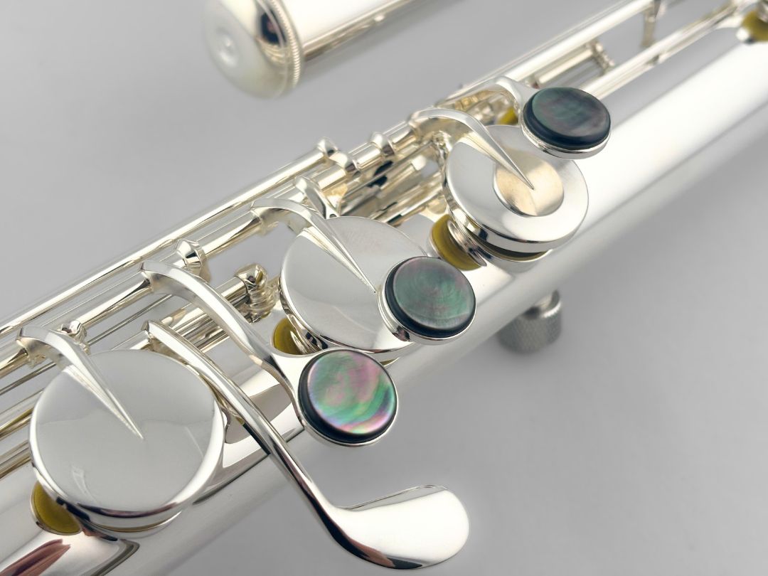 The Pearl PFB-305BE bass flute features a silver-plated headjoint, body and keys, pointed arms, split E mechanism and B footjoint.