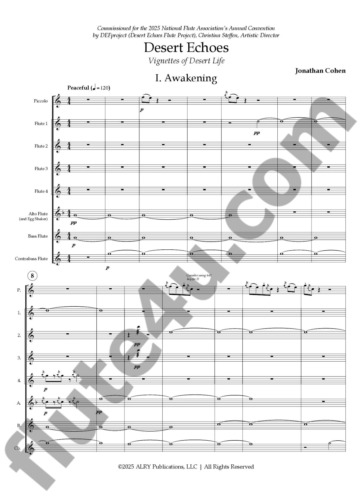 ALRY Publications presents 'Desert Echoes' for flute choir by Jonathan Cohen. In five varied movements, this piece presents musical glimpses of desert life.