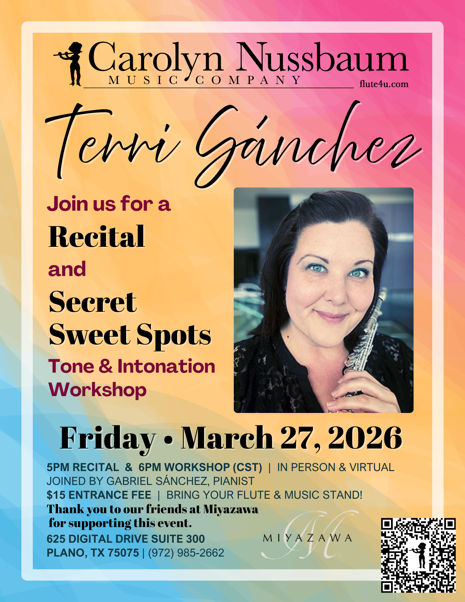 This class is available virtually via livestream and in person. Don't forget your flute and music stand!